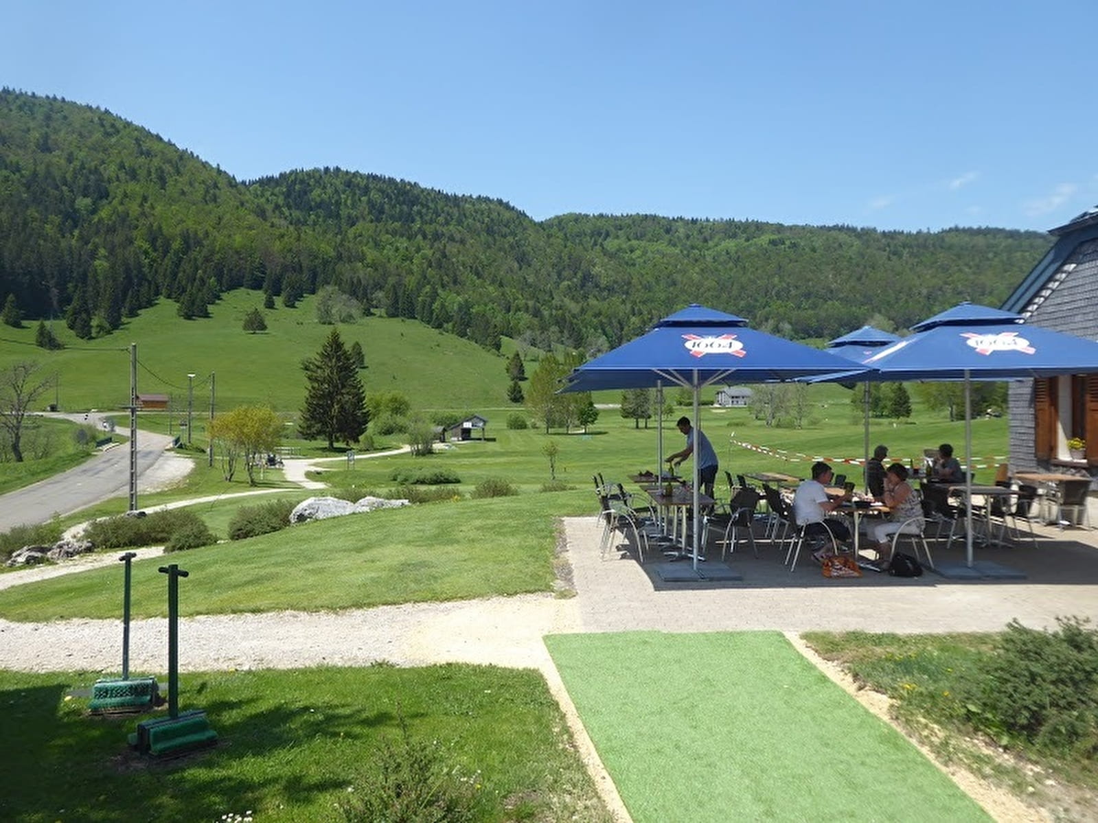 Après une descente vers le village de Mijoux, vous plongez rapidement dans l’ambiance paisible de la vallée. En chemin, vous longerez le golf de Mijoux, posé entre forêt et prairie, vous suivrez la Valserine. Cette rivière sauvage, bordée d’épicéas et de falaises, vous accompagne jusqu’au Pont Naturel, curiosité géologique creusée dans la roche par l’eau au fil du temps.