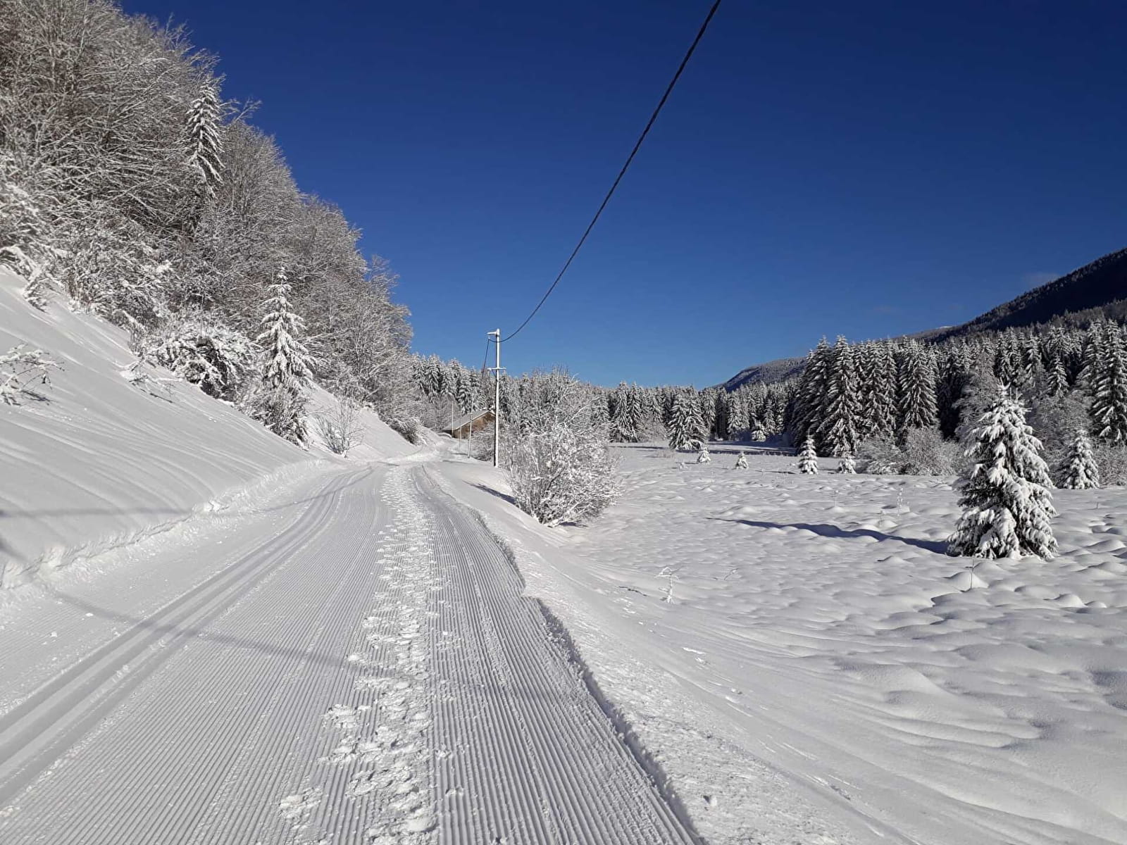 Située à 500 mètres du centre du village, en contrebas du Chalet Louis Marchand, juste en face des terrains de tennis, cette piste multi-activités invite à une belle escapade au cœur des paysages hivernaux de la vallée. Accessible à tous, elle offre l’occasion parfaite de profiter d’une balade tranquille, que ce soit à pied, en raquettes ou à ski de fond. Le parcours alterne agréablement entre berges de rivière, passages en forêt et clairières dégagées, dévoilant toute la beauté de la montagne en hiver. Bonne nouvelle : les chiens sont les bienvenus à condition d’être tenus en laisse, pour le bien-être de tous et le respect de l’environnement. Ce parcours peut s'effectuer uniquement en période d'eneigement.