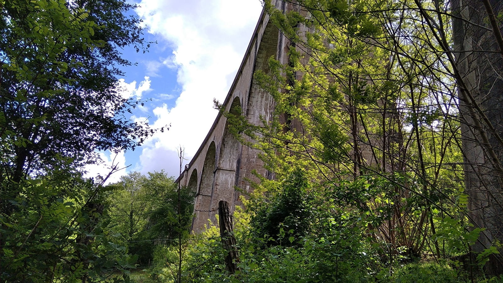 - Pour observer le viaduc de Crainseny, continuer vers la droite par les bois et redescendre sur un chemin forestier à hauteur d’Etiveau.