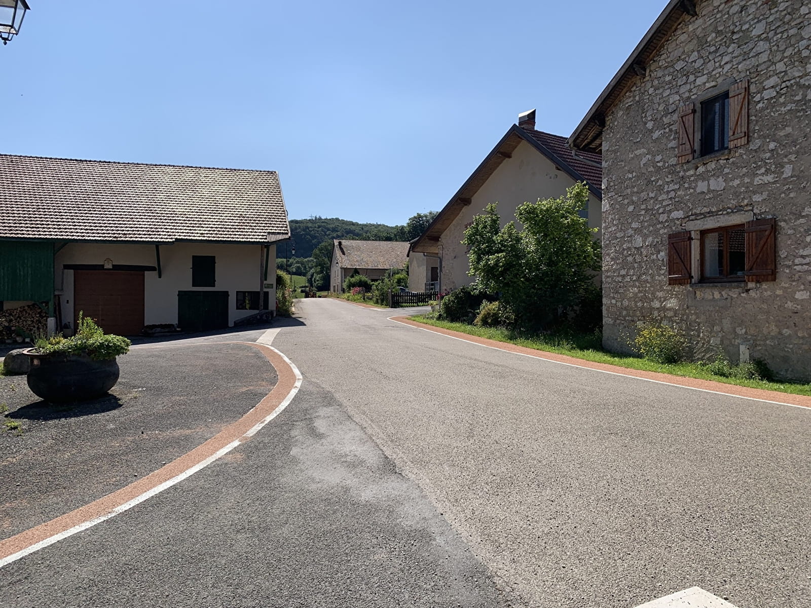 9. Le chemin devient un large chemin empierré qui rejoint à travers bois une petite route goudronnée. Le suivre pour rejoindre Prémillieu et la place de la mairie.