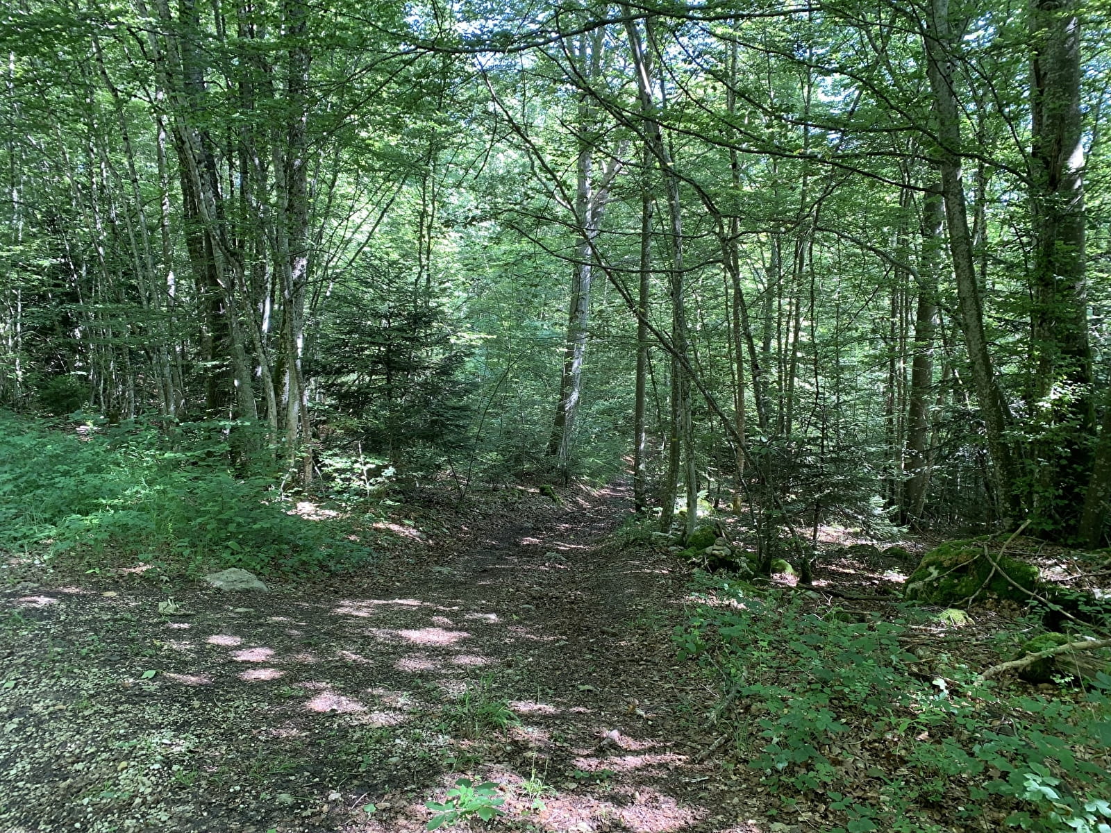 7. On passe au bas de la maison forestière pour retrouver une route forestière qui monte en pente raide à travers la forêt de Jailloux jusqu'à l'entrée du plateau.