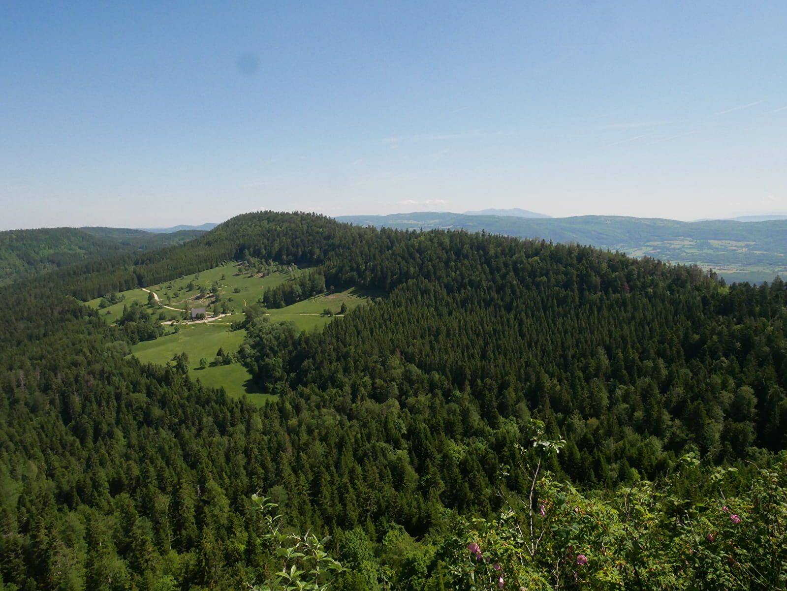 4. Le chemin serpente en pente plus ou moins raide jusqu'à atteindre la tour du réémetteur de Planachat. Passer derrière la tour et monter sur la gauche en direction du pylône du téléski. Bifurquer ensuite à gauche pour accéder après 50m, au belvédère et à sa table d'orientation.