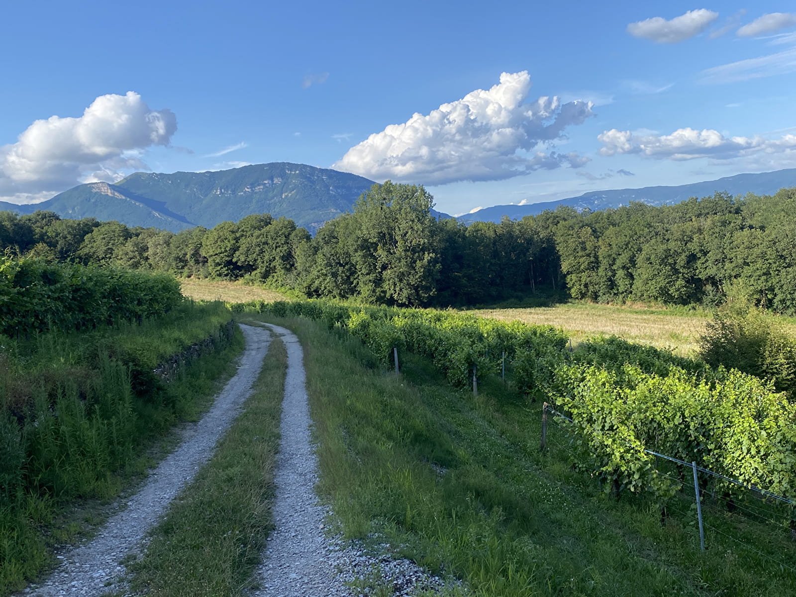 Randonnée vallonée entre vignobles et passages en forêt située à quelques minutes de Belley et du lac de Barterand.