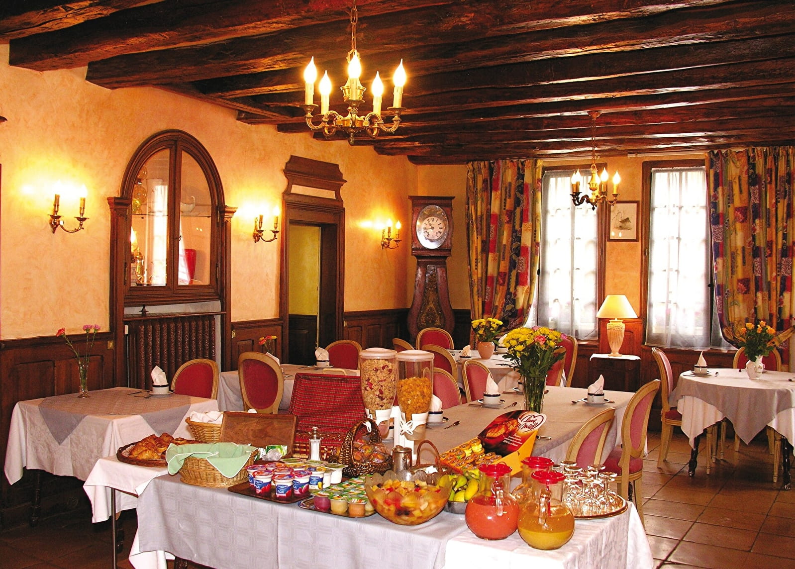 Confortablement installés dans la salle à manger à l'ambiance raffinée, vous pourrez apprécier les recettes gourmandes du chef aux accents bourguignons et d'ailleurs comme le balluchon d'escargots au chou, l'oeuf poché à la crème d'Époisses, le tournedos de charolais, le filet de bar au miel et au vin rouge. Sans oublier le savoureux plateau de fromages et une harmonieuse carte des vins de Bourgogne et de toute la France, riche de nombreuses références.