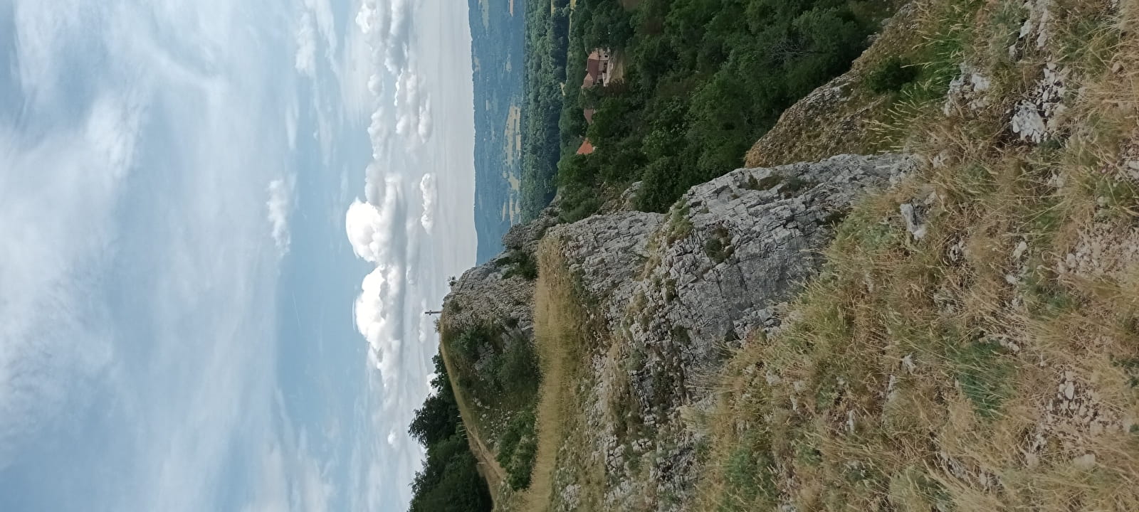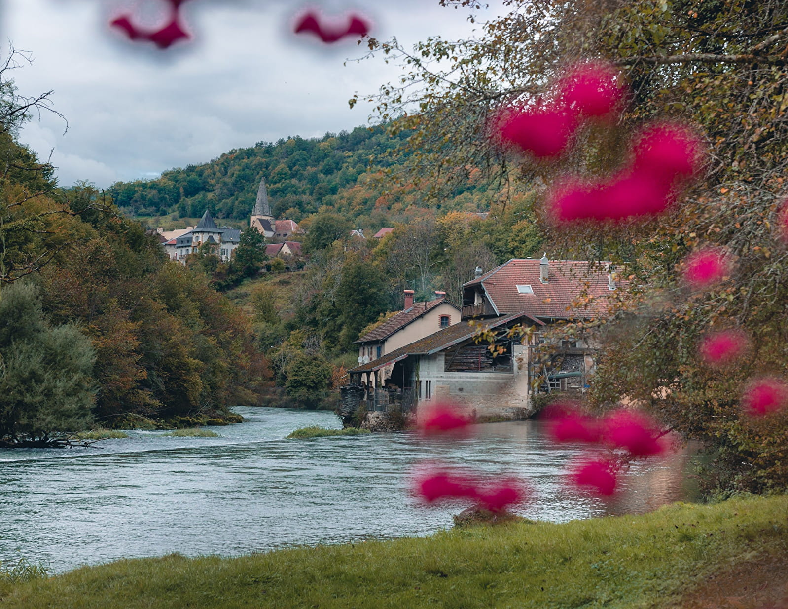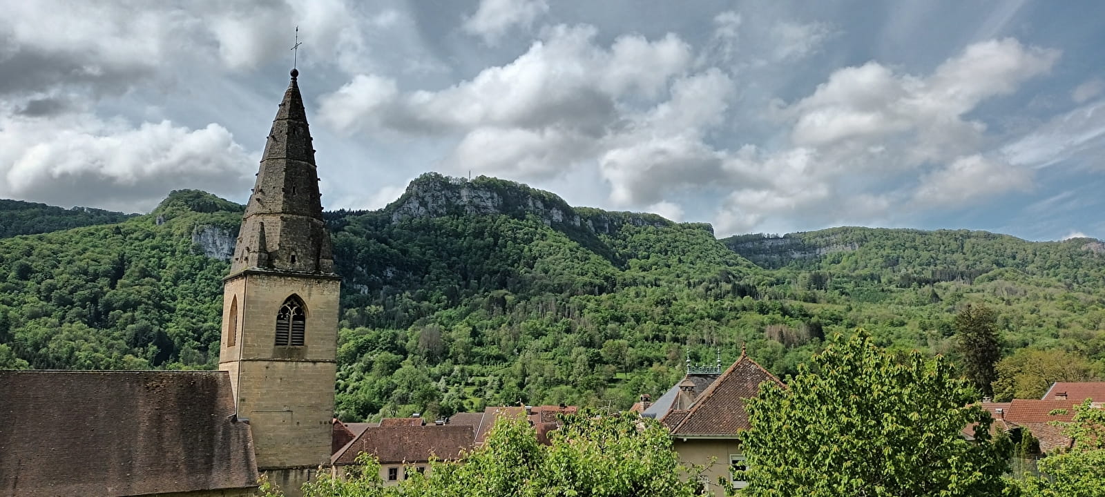 Depuis Mouthier-Haute-Pierre, le sentier monte à travers les prés et vergers pour rejoindre le petit village d'Hautepierre-le-Châtelet. L'itinéraire continue de monter au-dessus des maisons, quelques marches d'escaliers mènent à la Roche de Hautepierre qui domine la Loue située à 200 mètres en contrebas. Ce belvédère offre un panorama grandiose sur l'ensemble de la haute vallée de la Loue et ses environs. Par temps dégagé, on peut même apercevoir le Mont Blanc au loin. La boucle rebrousse chemin et retourne à Hautepierre pour poursuivre la descente sur Mouthier par le Petit Mont.