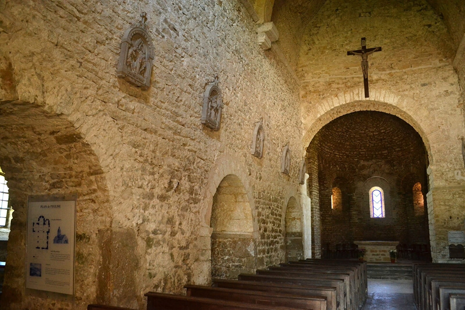 Parcours aux multiples centres d’intérêt : église romane de Saint-Hymetière, grotte, cascades, falaises surplombantes et rives de la Valouse.