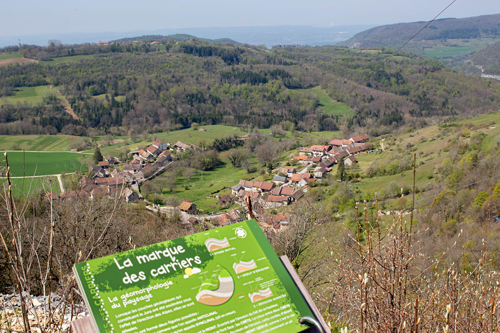 Au fil d'un itinéraire court et sans difficulté, les stations d’interprétation vous plongent dans l’histoire de cette carrière pas banale. D'abord exploitée pour son calcaire lithographique, extrait pour servir à l'impression de gravure sur pierre dans toute l'Europe. Au XXème siècle, une équipe d'archéologues révéla une quantité de fossiles de toutes sortes (reptiles, poissons, faune, flore, tortures géantes...) témoignant du très lointain passé de lagune tropicale de ce coin de montagne aujourd'hui partie intégrante du massif du Bugey.