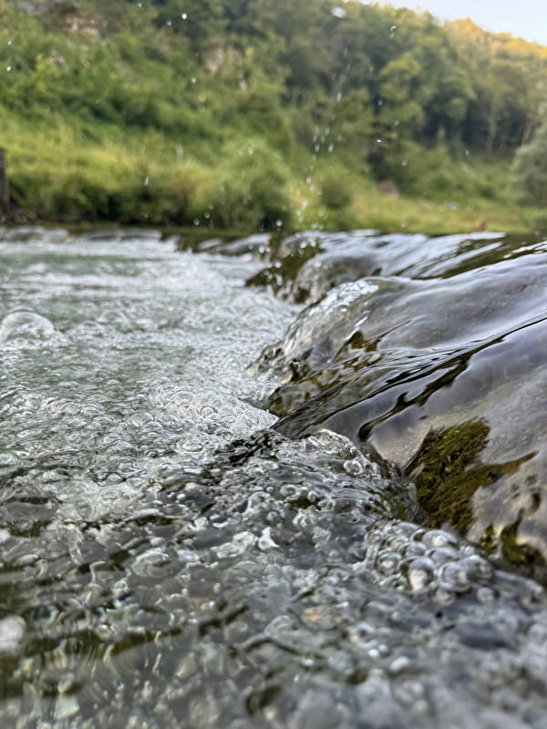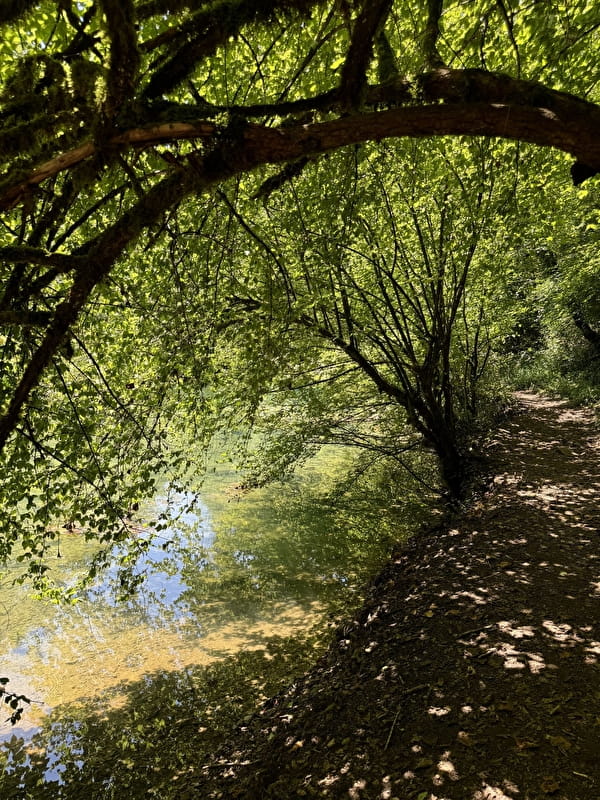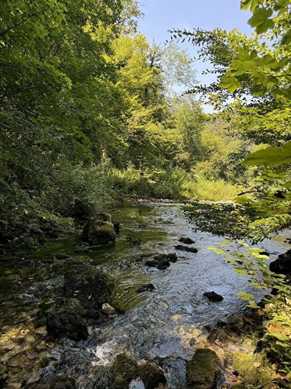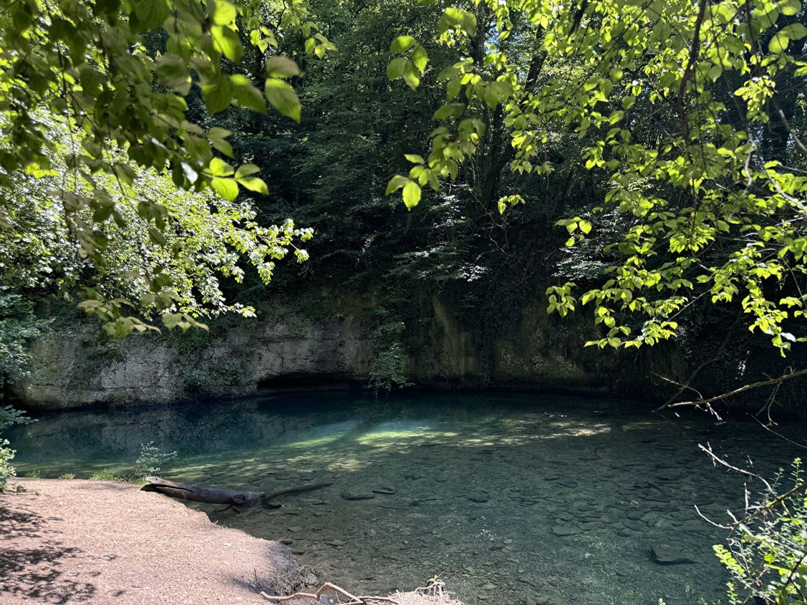 Étape 1 : Démarrez du parking de la Mairie de Val de Cusance, suivez les indications « Source Bleue » qui vous mènera sur un petit sentier qui longe le Cusancin jusqu’à la résurgence souterraine calme et colorée. On comprend tout de suite pourquoi on l’appelle la source bleue ! Par temps dégagé, sa couleur est vraiment surprenante.