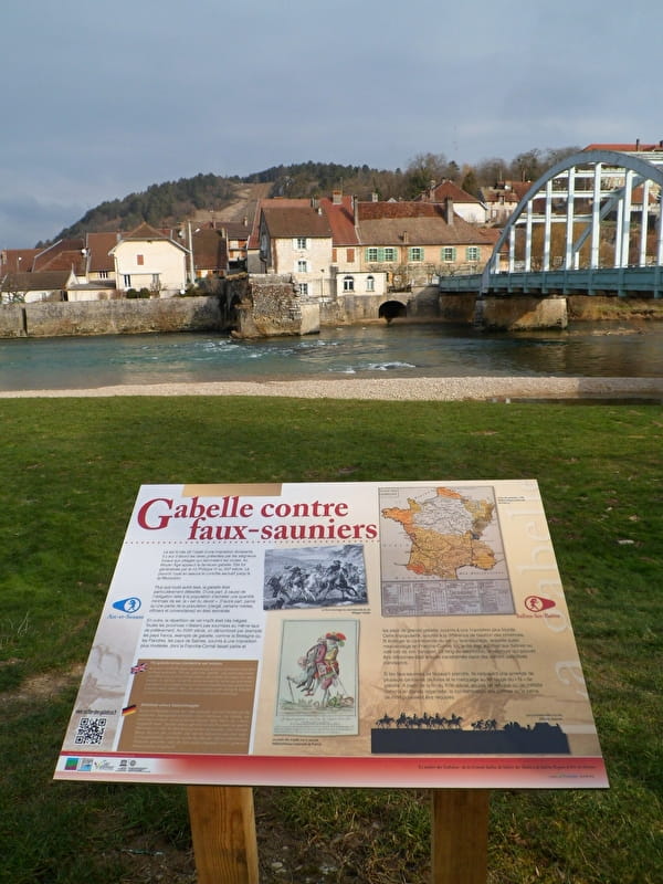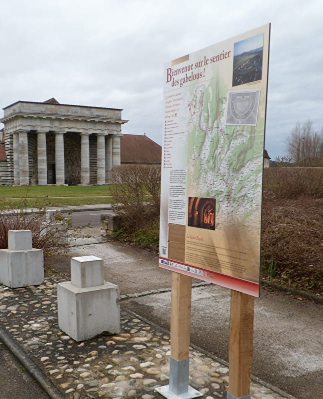 Le Gabelou était un douanier chargé de la surveillance du sel. D'où le nom de ce sentier balisé (balisage jaune) de 29,5 km pour randonnée et VTT reliant Salins les Bains et Arc et Senans.