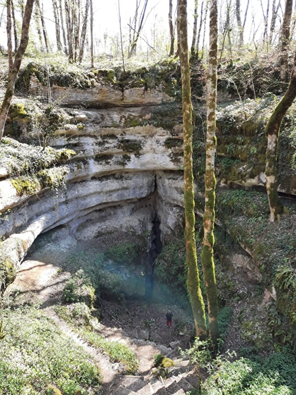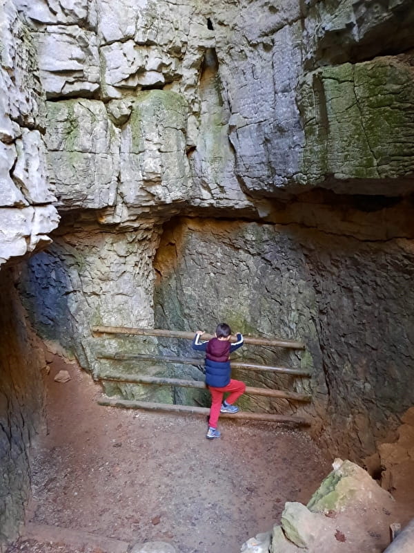 Cette promenade en sous-bois est ouverte à tous. Elle vous permettra de découvrir le pays calcaire avec grottes, gouffres, dolines, lapiaz… Des visites guidées sont proposées l'été. Elles passent par la grotte Maëva qui a été aménagée pour vous accueillir. Vaste parking, coin pique-nique, WC… lieu calme et ombragé, restant frais en cas de grosses chaleurs.