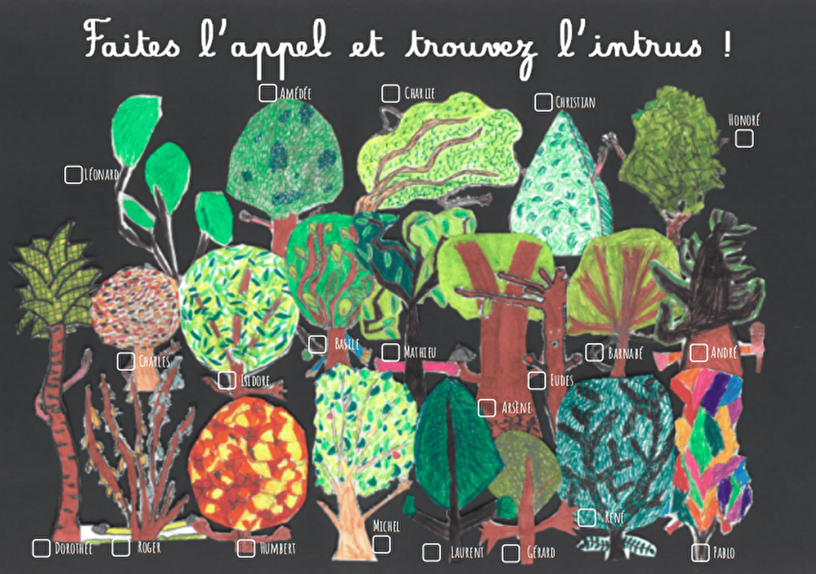 Lors de cette balade, vous découvrirez les nombreuses essences d'arbres grâce au jeu "Trouvez l'intrus".