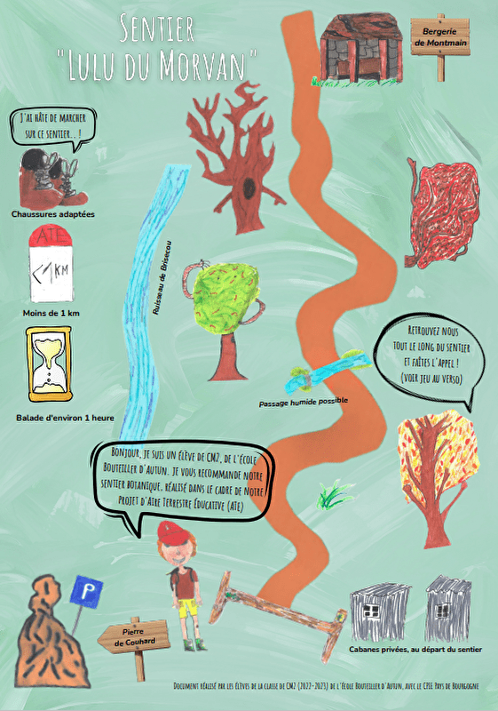 Ce sentier a été créé par la classe de CM2 de l'école Bouteiller à Autun, avec le CPIE de Bourgogne, dans le cadre du projet "Aire Terrestre Educative".
