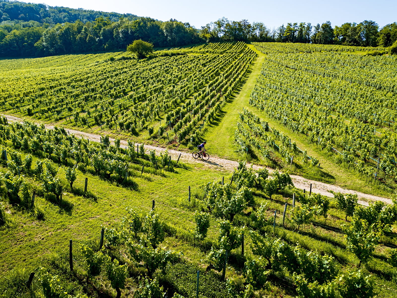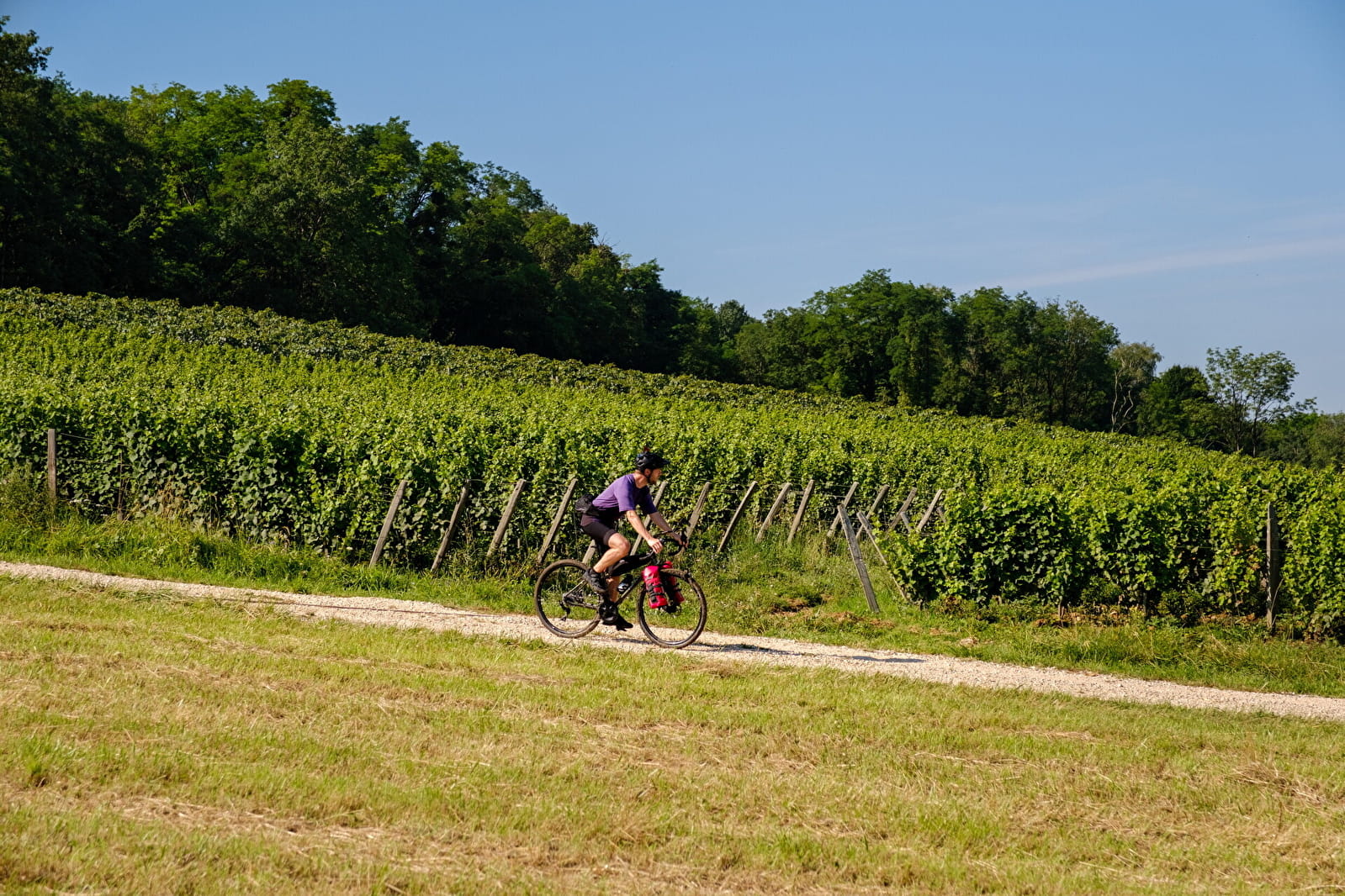 Et si vous sortiez du tracé classique ? C’est ce que vous propose cette option gravel de l’étape n°3 du Tour du Jura Vélo Loisirs entre Aiglepierre et les Arsures (3 km) puis entre Arbois et Poligny (18 km). Après avoir suivi le tracé initial entre Port-Lesney et Aiglepierre vous emprunterez des petites routes en alternance avec des chemins non-bitumés entre les vignes vous invitant à l’aventure. Le gravel se développe, devient phénomène, et le vignoble jurassien est particulièrement adapté à cette découverte. Et si le voyage commençait au détour d’un sentier ? Téléchargez la trace GPX et suivez votre esprit gravel.Parcours à emprunter avec un vélo adapté aux chemins non-bitumés / Itinéraire gravel avec un dénivelé positif supérieur au tracé initial