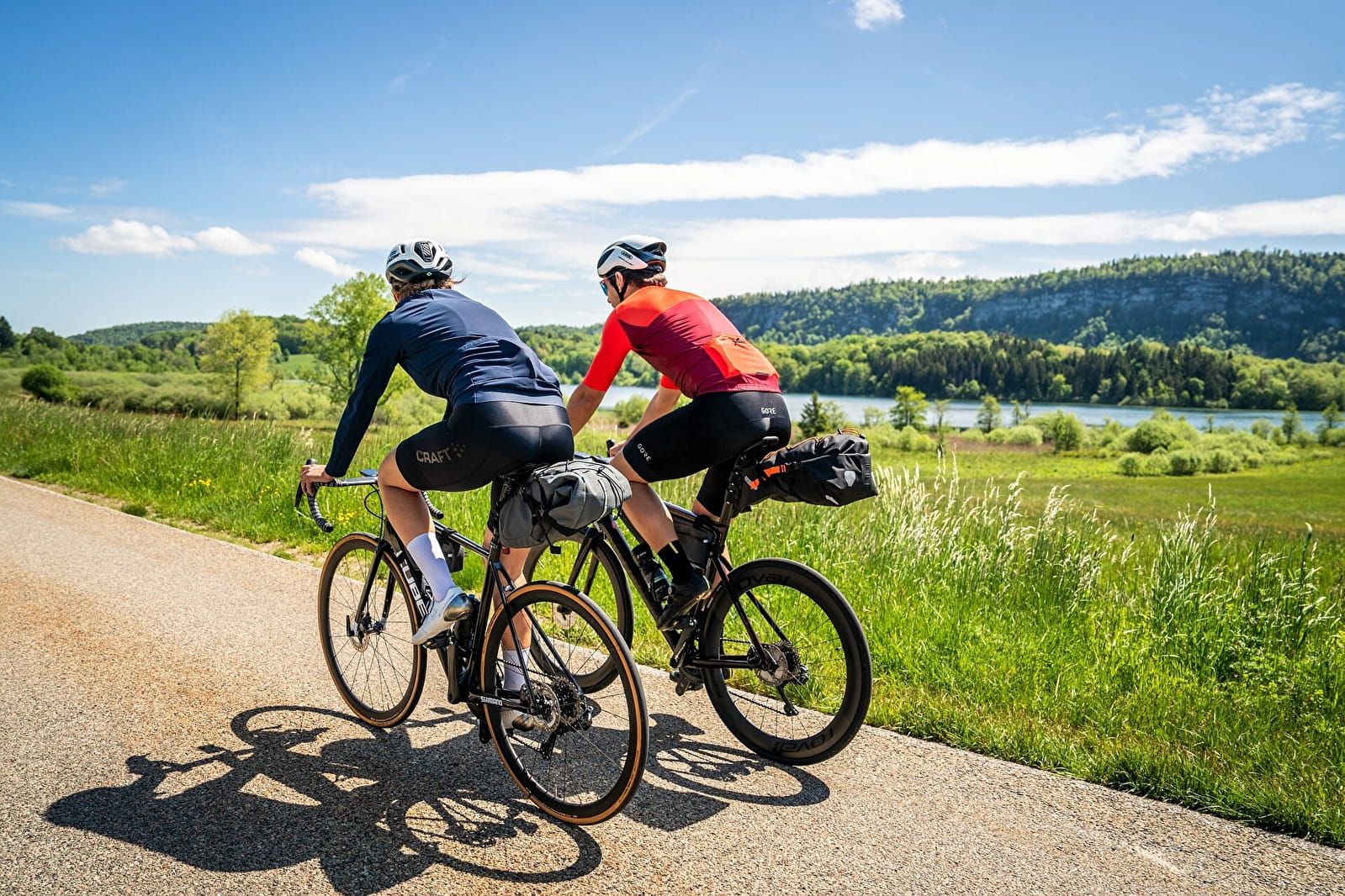 Il s’agit sans doute de l’étape la plus rafraîchissante de votre aventure jurassienne à vélo. Après avoir quitté la petite station-village de Prénovel à près de 1000 m d’altitude, vous rejoignez l’un des sites majeurs du Jura, le plateau des 4 lacs (Ilay, Narlay, Grand et Petit Maclu). Surnommée la « Petite Écosse du Jura », cette région ne laisse pas indifférent par son caractère authentique et naturel avec ses camaïeux de bleus et de verts. Vous pourrez également apprécier le haut des cascades du Hérisson, autre site incontournable avant de rejoindre, par une petite route ombragée, les rives du lac de Chalain, plus grand lac naturel du Jura, admirable depuis le belvédère de Fontenu (aller-retour possible à vélo).