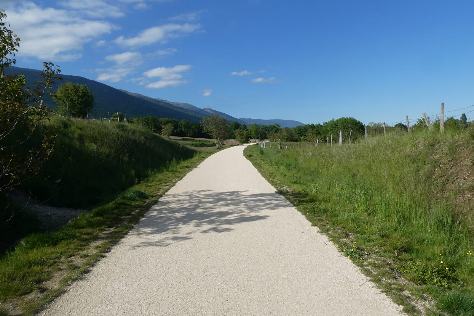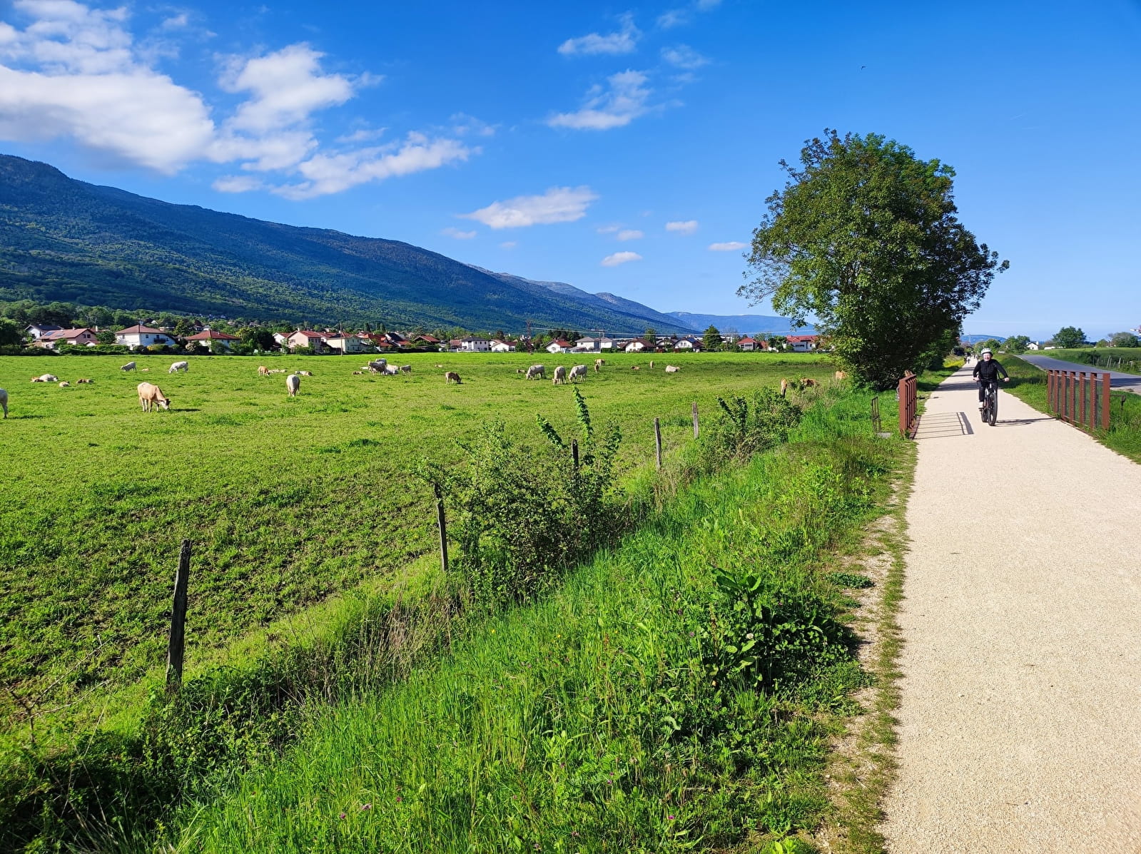 Depuis cette voie verte, une ancienne voie ferrée réaménagée pour les mobilités douces, les cyclistes peuvent facilement rejoindre deux itinéraires majeurs de la région : le circuit du Balcon du Léman et la Voie 10 de l’Ain.